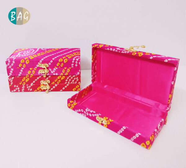 Looking for an elegant and traditional way to present your shagun or other gifts? it is practical and stylish, making it the perfect accessory to carry small essentials like jewelry, cosmetics, and more. Whether you’re attending a wedding, a party, or a festive occasion, our bandhej shagun box is sure to make a statement. Shop now and add a touch of sophistication to your shagun or other gifts with our stunning bandhej shagun box
